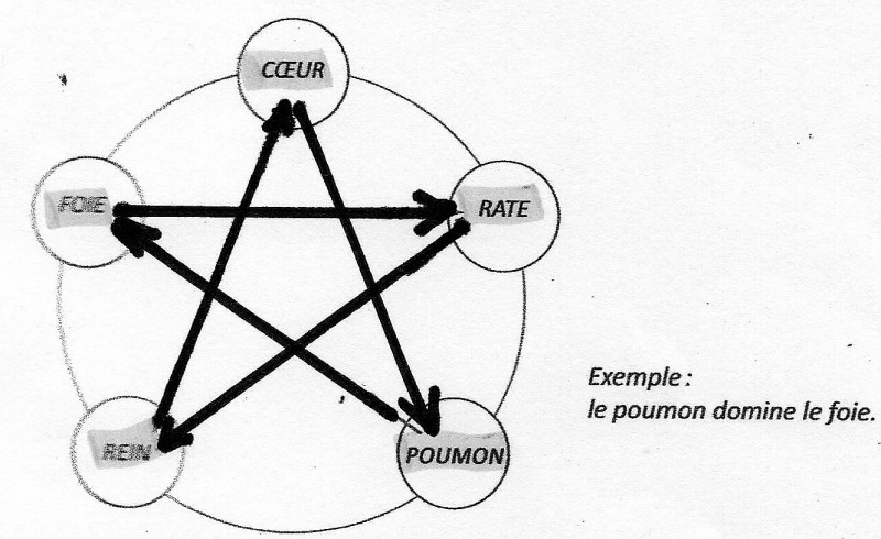 La loi de domination, dans laquelle chaque organe domine pour contrôler celui de l'élément qui suit son propre fils.