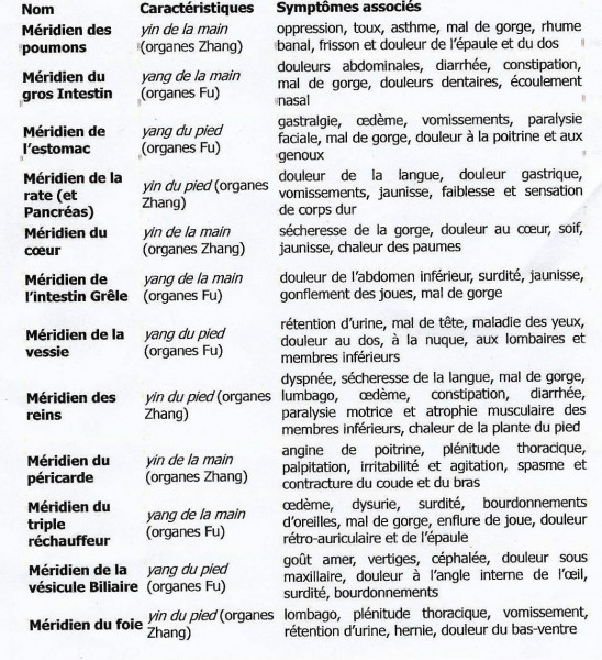 Méridiens YIN : Poumons, Coeur, Maître-Coeur, Foie, Reins, Rate/Pancréas