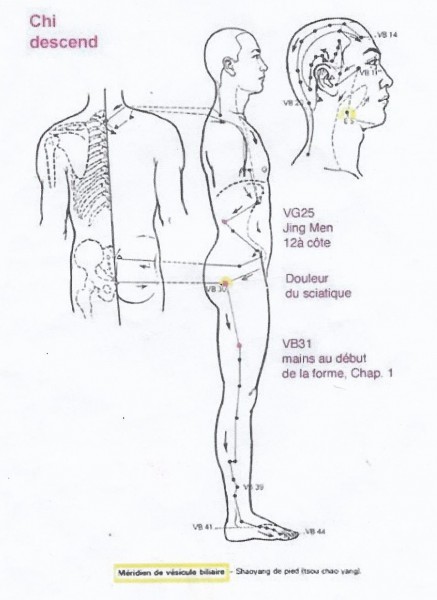 Composé de 44 points d'acuponcture, il débute au coin externe de l'oeil et se termine au quarième orteil.